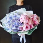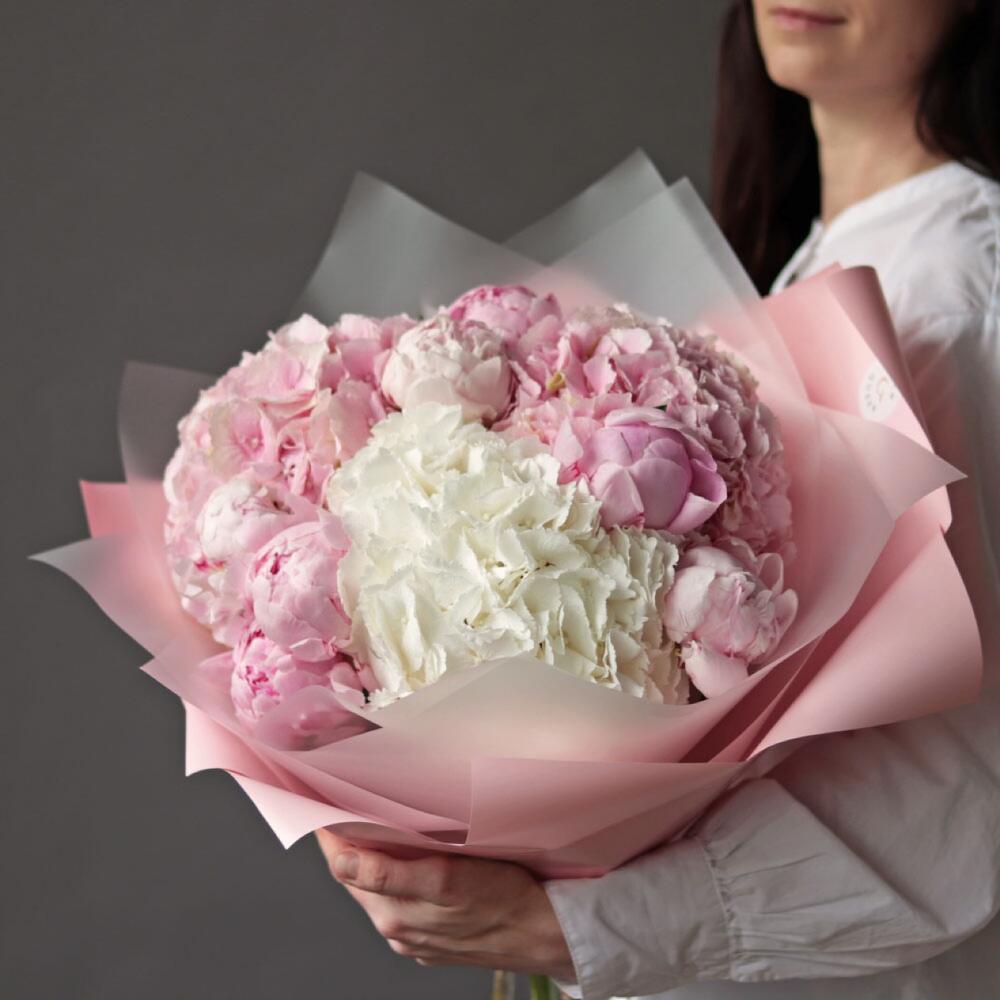 Гвоздики, Гортензии, Кустовые розы, Лизиантусы, Розы