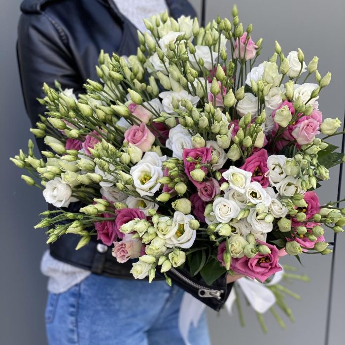 Эустома – 29 шт. Оформление атласная лента – 1 шт.