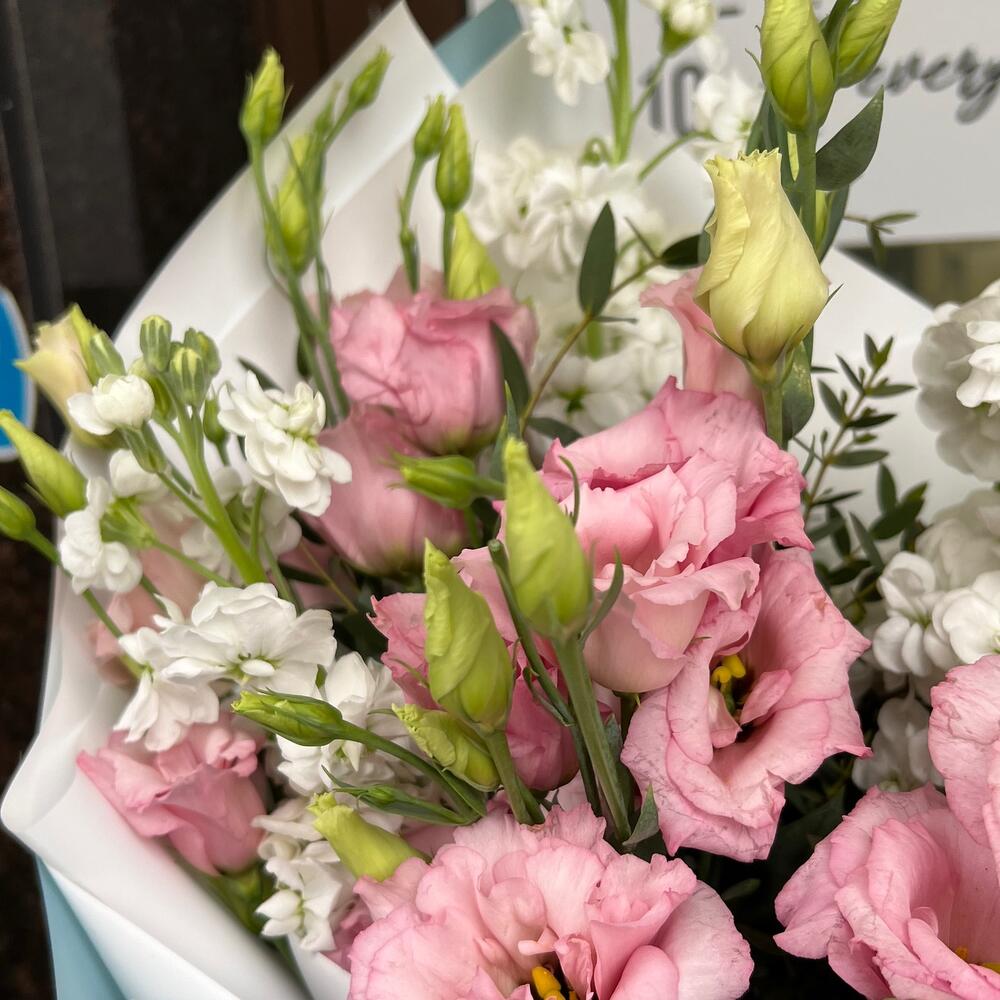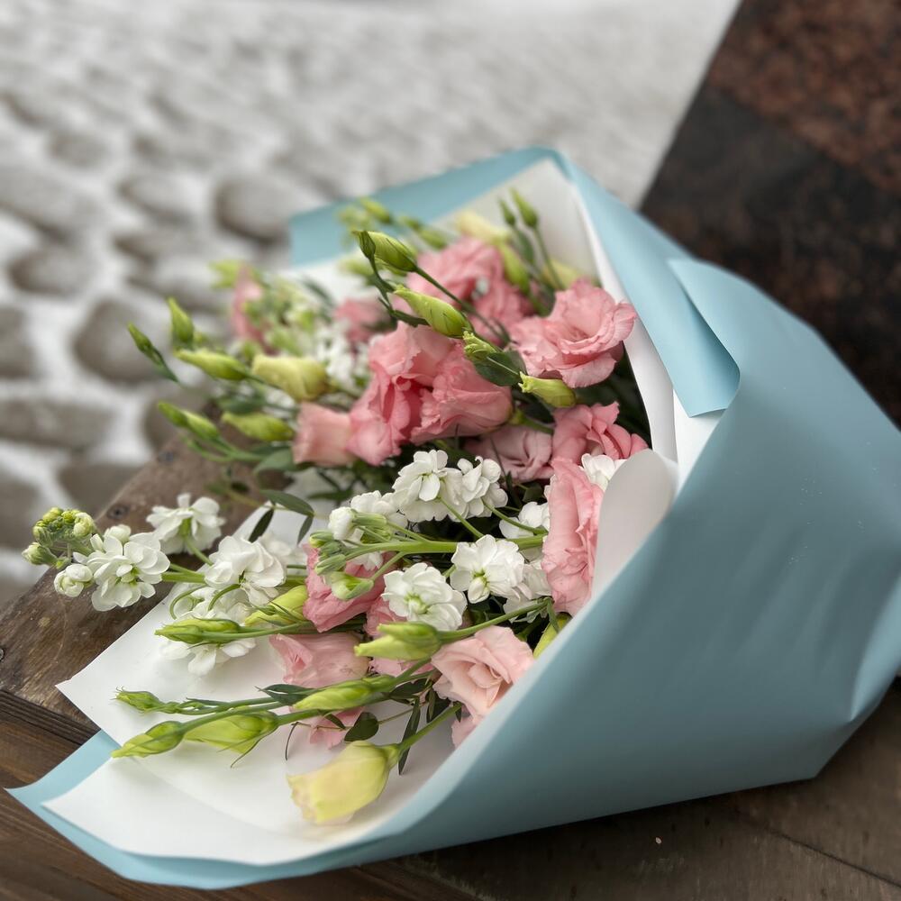 Букет с маттиолой и лизиантусом
