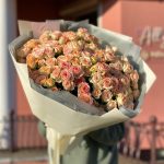 Букет из 25 кустовых веток сорта Azor с дизайнерским оформлением. Количество розочек (бутонов ) в букете может достигать 171 штуки