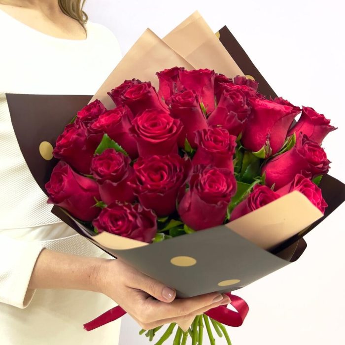 29 красных роз в упаковке