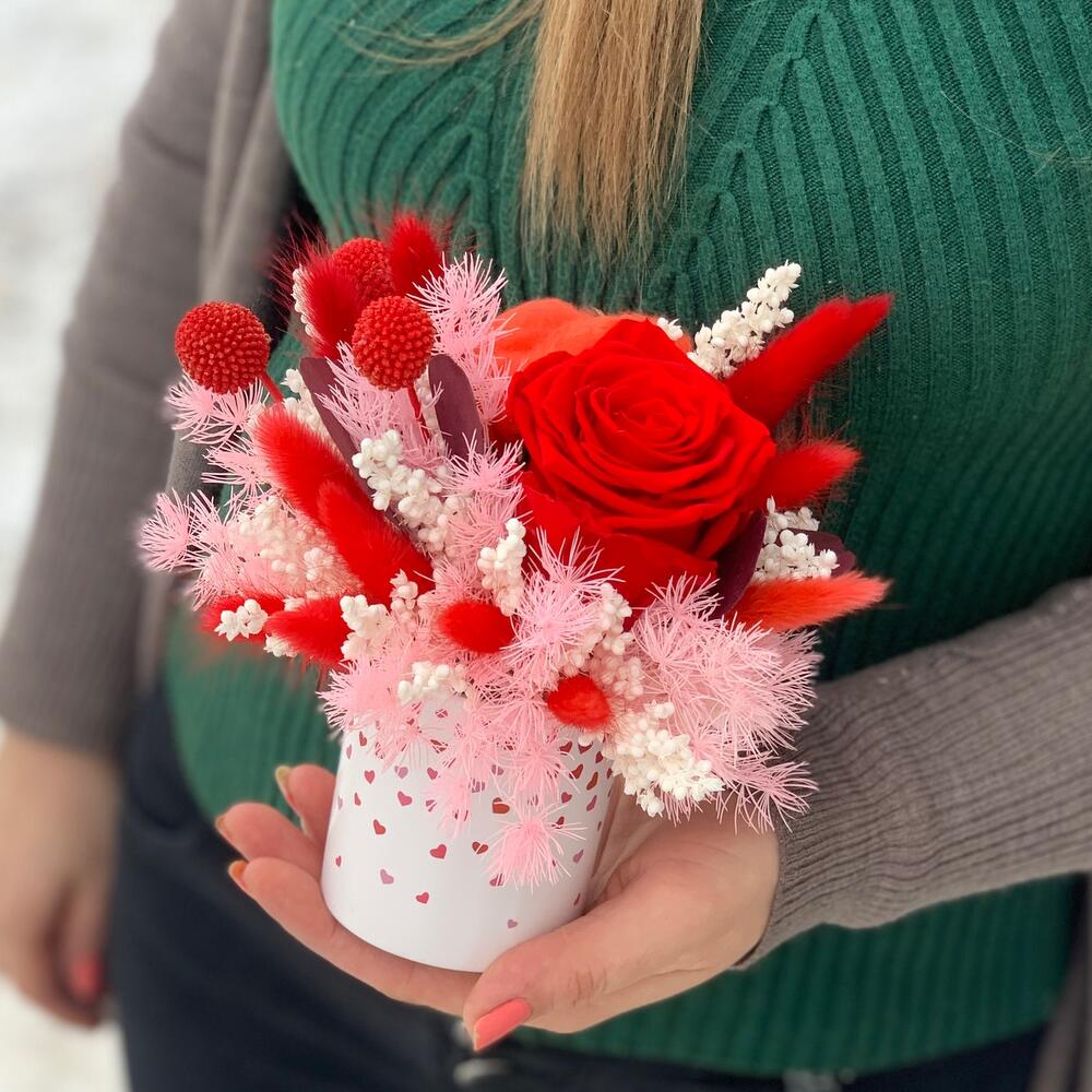 Сухоцветы – 45 шт.Роза стабилизированная – 1 шт.