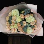 Роза Мондиаль – 5 шт.трендсеттер роза кустовая – 4 шт.Эвкалипт Baby Blue – 3 шт.Пленка матовая – 3 шт.