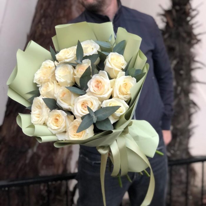 Букет из 15 белых высоких роз