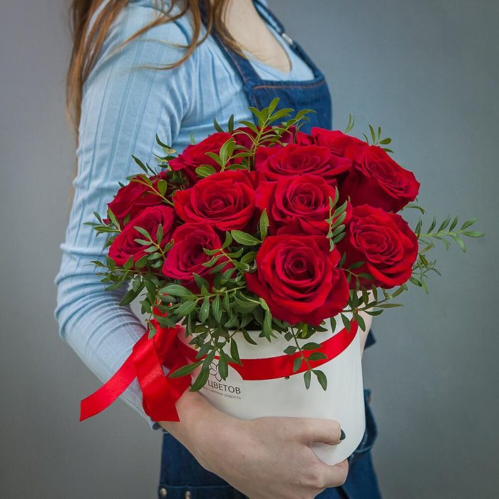 розы – 15 шт.Шляпная коробка – 1 шт.
