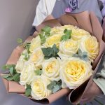 кендилайт роза пионовидная – 15 шт.Эвкалипт – 5 шт.Корейская упаковка – 3 шт.бант атласный – 1 шт.