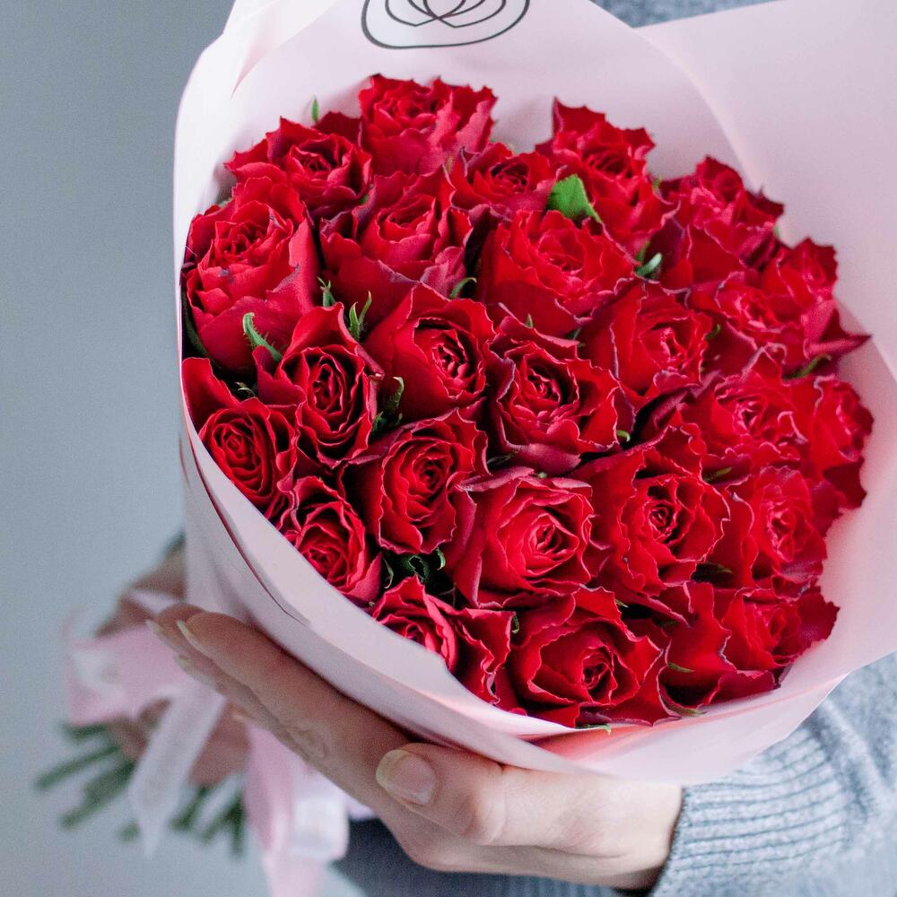 Букет из 25 красных роз (Эквадор) 70 см Freedom в розовой пленке