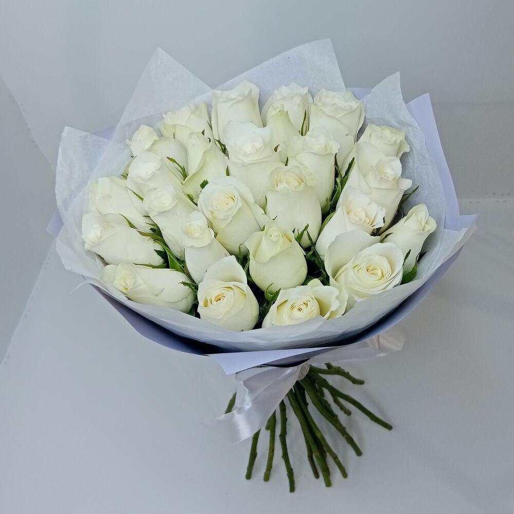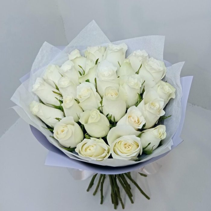 Букет из 25 роз белых в лавандовом