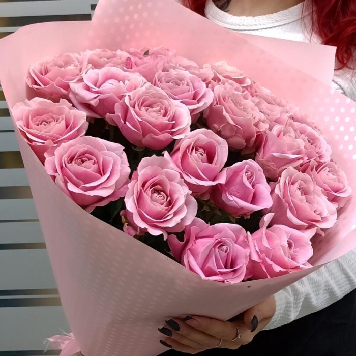 роза россия розовая 70 см – 25 шт.Упаковка дизайнерская – 3 шт.Лента атласная – 1 шт.