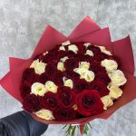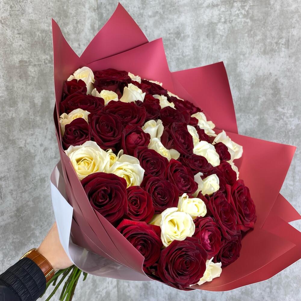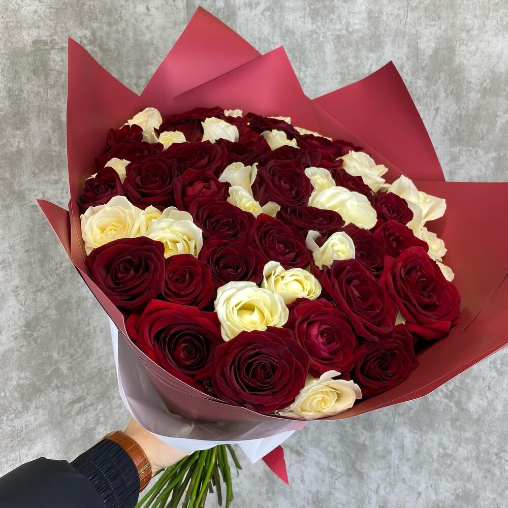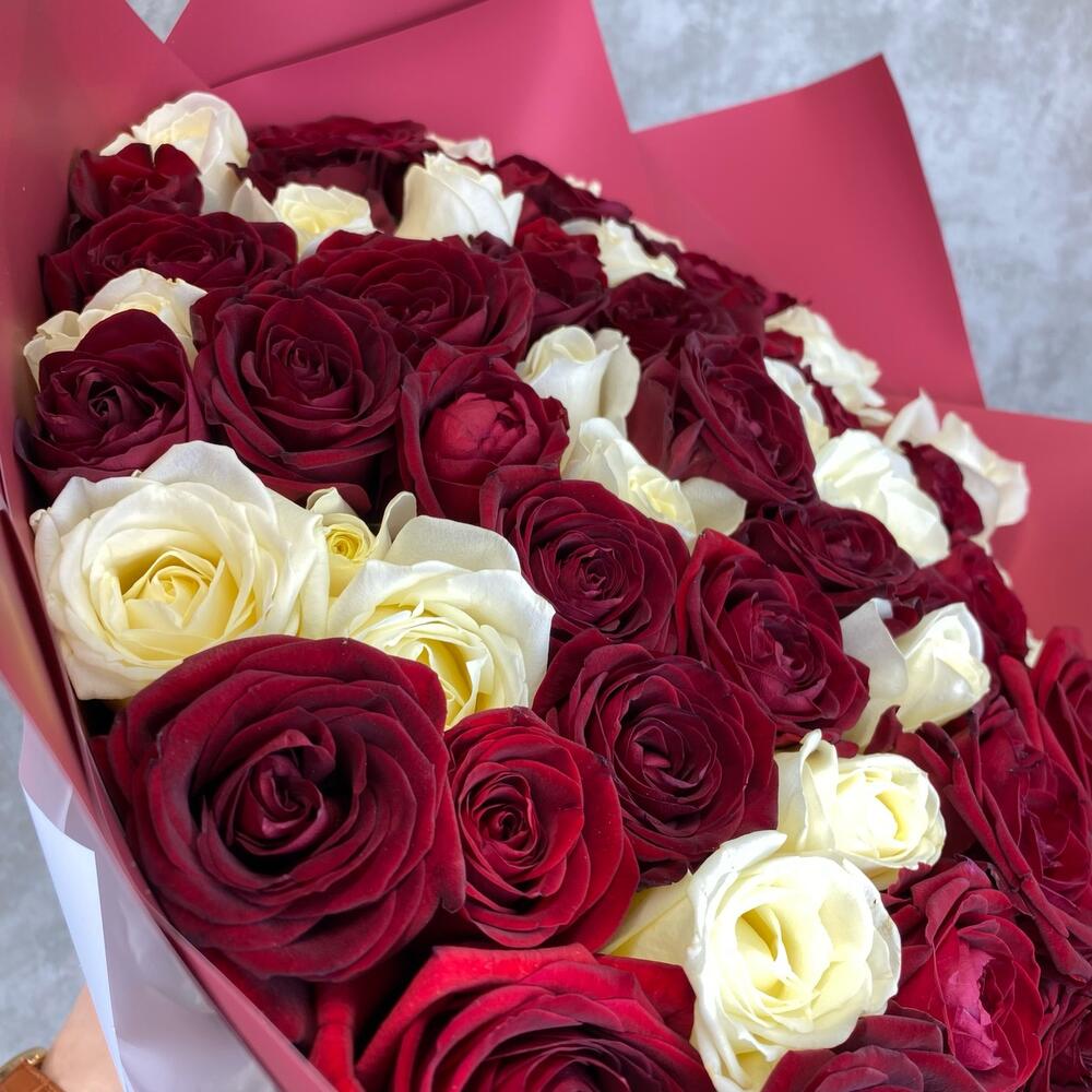 Букет из 59 красных и белых роз