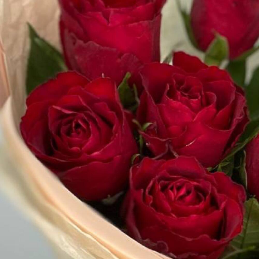розы кения 40 см – 9 шт.зелень фисташки – 3 шт.Упаковка дизайнерская – 1 шт.