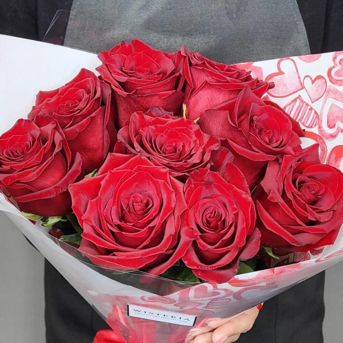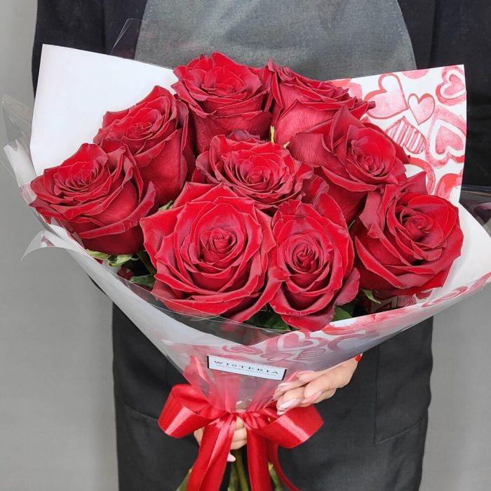 Букет из 9 красных роз в стильной упаковке