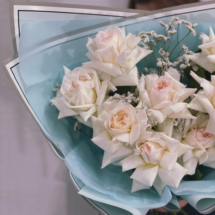 Лимониум – 4 шт.Тишью – 2 шт.Фисташка – 2 шт.Упаковка дизайнерская – 2 шт.роза охара пионовидная – 9 шт.