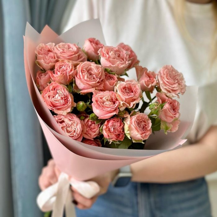 Пленка матовая – 2 шт.кустовая роза пионовидная мадам бомбастик – 5 шт.