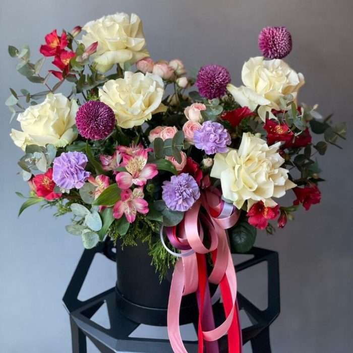 Категорий: Альстромерии, Гвоздики, Кустовые розы, Розы, Хризантемы