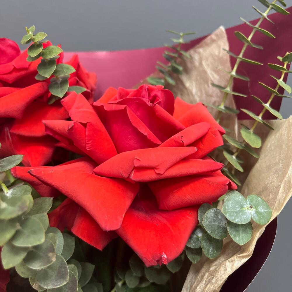 Французские розы с эвкалиптом, 7 штучек