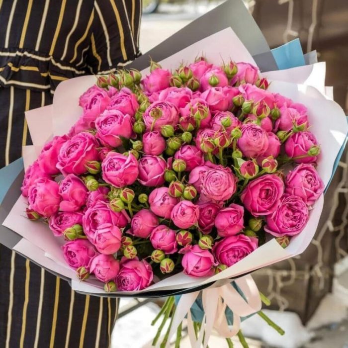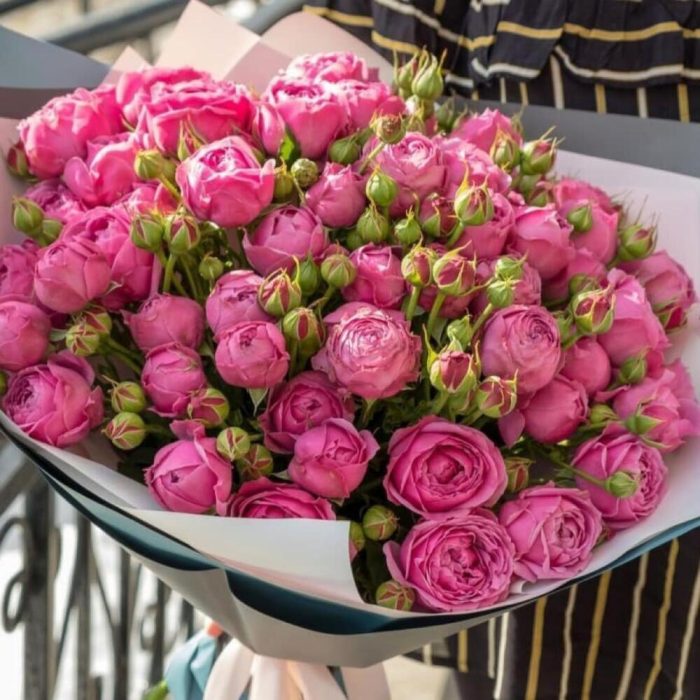 Misty Bubbles пионовидная роза – 15 шт. Упаковка дизайнерская – 3 шт. Открыточка с вашими пожеланиями – 1 шт. инструкция по уходу за цветами – 1 шт.