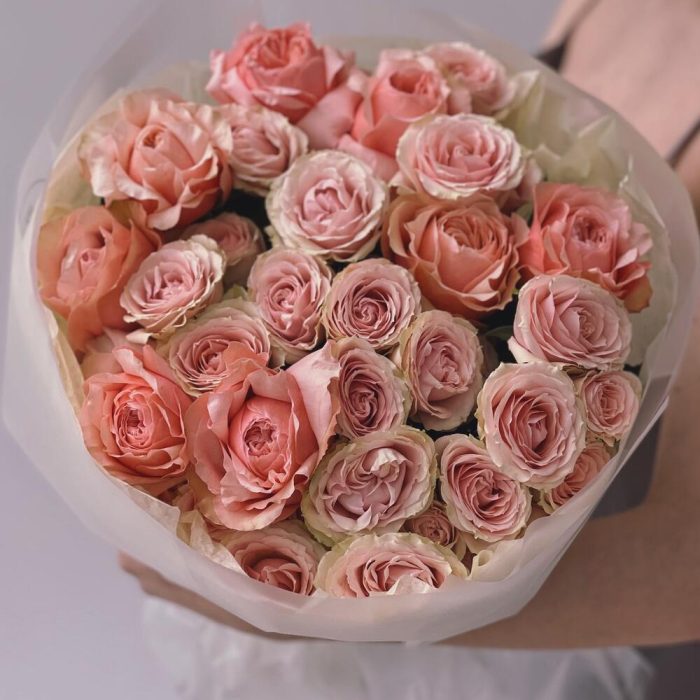 Роза – 9 шт.Кустовая роза – 6 шт.Упаковка дизайнерская – 1 шт.