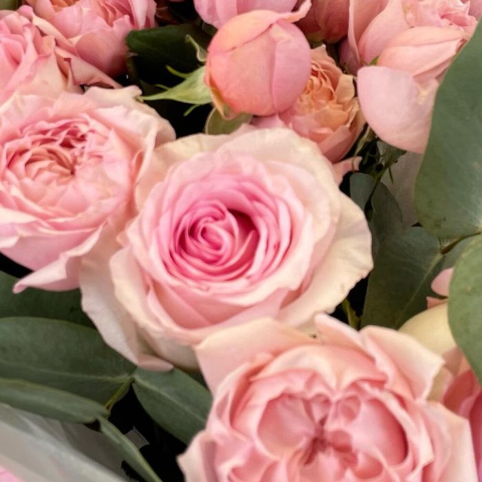 Нежный букет с розами и эвкалиптом