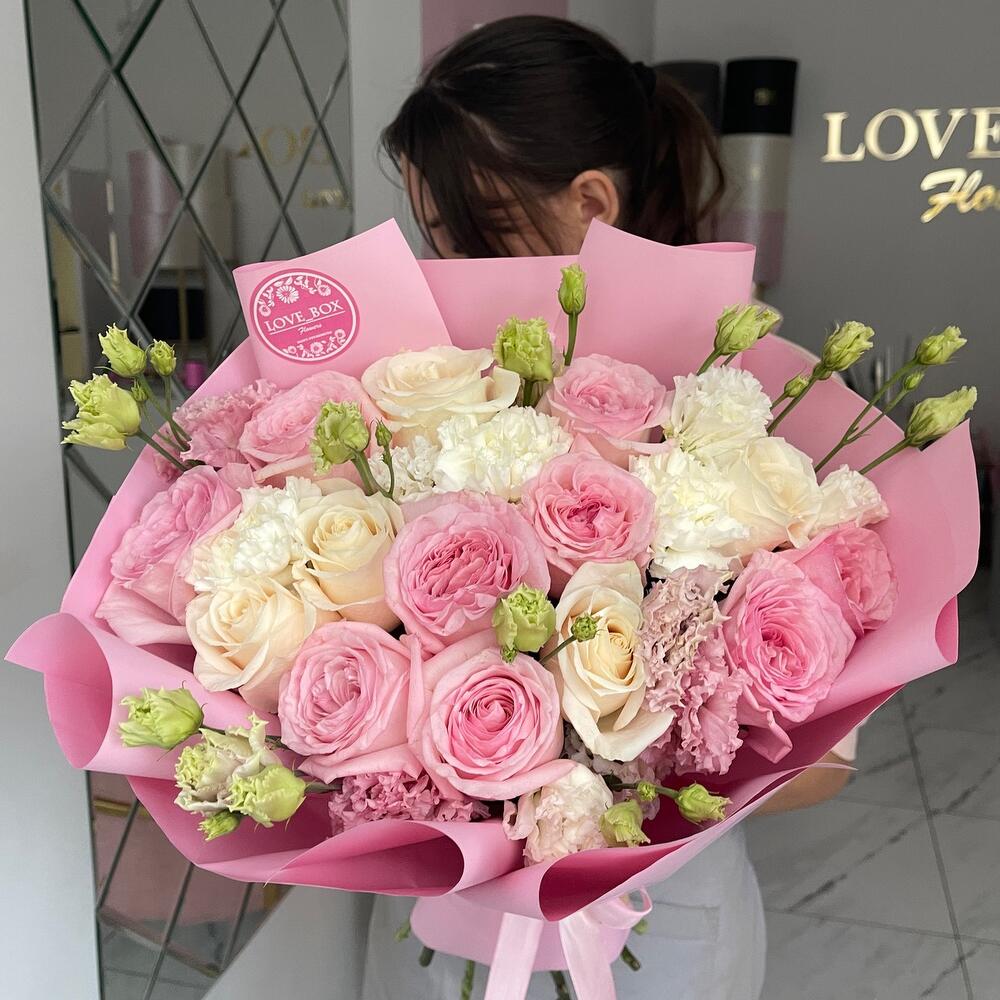 Категории: Гвоздики, Лизиантусы, Розы