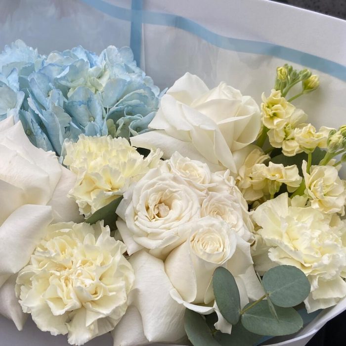 “Эвкалиптическая роскошь” гортензия и пионовидная кустовая роза