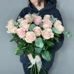 Букет из королевских стойких роз Мондиаль с ароматным эвкалиптом.