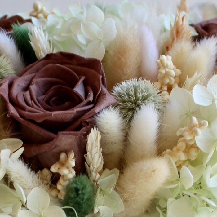 “Атлас☁️” – цветочная композиция с зефиром в деревянном ящике