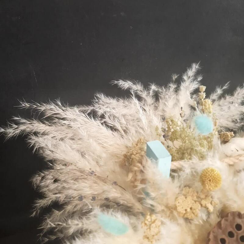 Деревянный ящик с воздушной кортадерией, загадочным лотосом и вечностойкими сухоцветами