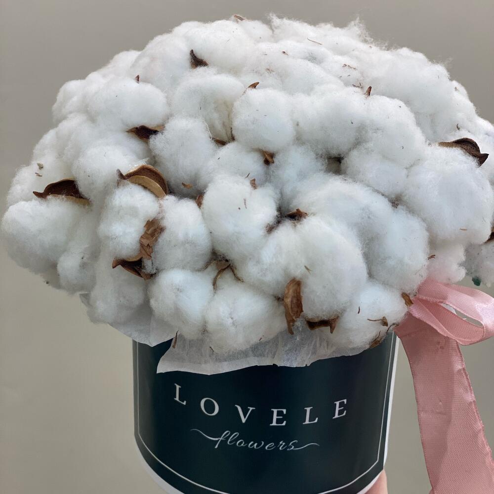 Хлопок – 3 шт.Шляпная коробка – 1 шт.Оазис флористический – 1 шт.